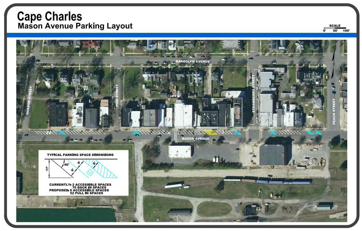 4. I have been a big supporter of front-in parking and still am ……with caveats. Losing 20 parking spaces without good additional parking to offset this loss is unthinkable. So ample parking in the rail yard lot should be created and in use before front-in parking is installed. And specific areas for golf cart parking would be helpful, especially near the library and Brown Dog. Am I misremembering or wasn’t some additional parking supposed to be installed behind the library? A lot of time and energy is being spent to attract more folks to Cape Charles so solving the parking issue is critical. The long term solution is probably a parking garage and evaluating that as part of any re-zoning thinking for the railroad property would be helpful.