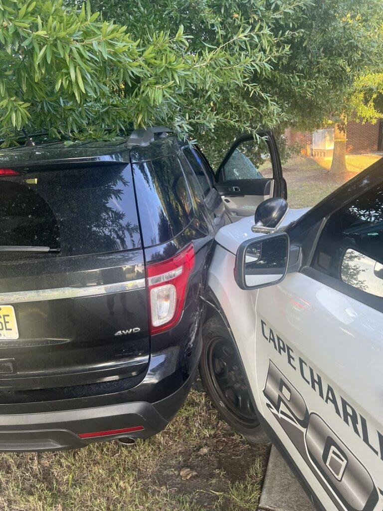 Police Search Update 8/30/2023 8:45am – Following an extensive search last evening, CCPD believes the suspect has now fled the area. Residents may resume normal activity...so, after running from Eastville Police (the pursuit started in Eastville) and heading into Cape Charles, the Cape Charles Police saw the vehicle and chased them. A high-speed chase ensued and went down Mason Ave, Bay Ave. The pursued vehicle then turned into the park and crashed into a tree. The driver exited the car and fled on foot. He managed to elude Cape Charles PD, Northampton County Sheriff’s Deputies, a Deputy from Accomack Sheriff’s Office, Virginia State Police, the Eastville Police Department, and a K-9 dog officer. The suspect then stole a car and escaped.